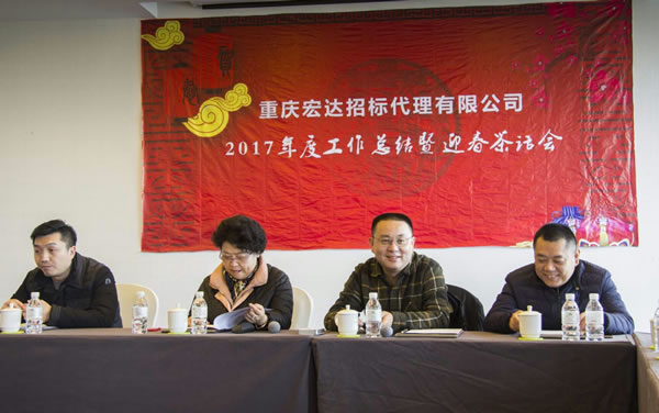 2018年2月2日-3日,重慶宏達招標代理有限公司2017年度工作總結暨迎春茶話會在北碚心景酒店順利召開。會議由萬力總經理主持,公司全體員工及各分公司負責人參加會議。